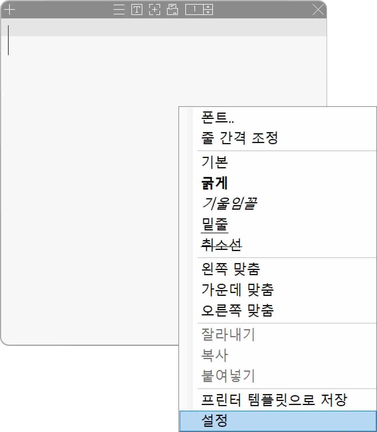 오른쪽 마우스를 클릭하면 메뉴를 볼 수 있습니다. 여기서 설정 을 선택해 주세요.