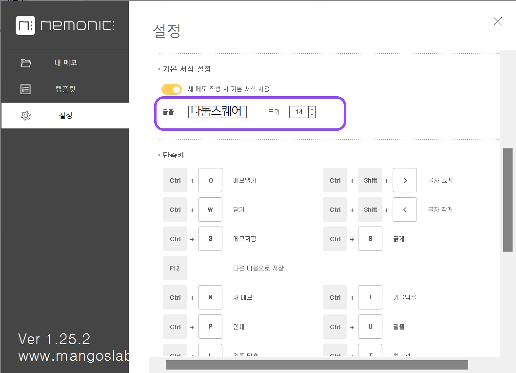 일반적으로 짧은 1~3문장 정도의 메모를 하는 경우, 나눔 스퀘어 regular, 14pt를 추천드립니다.