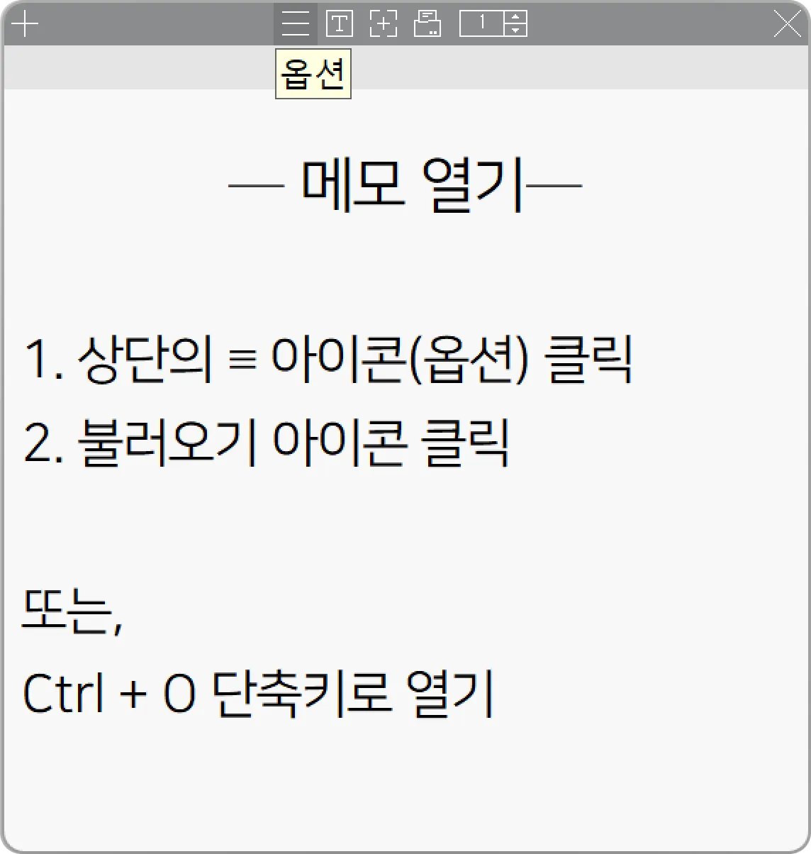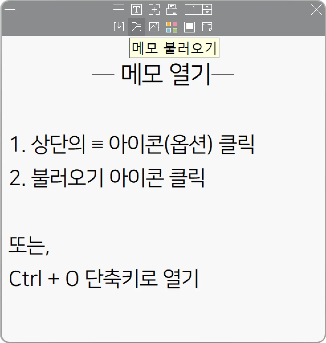메모 불러오기 아이콘을 클릭하거나, Ctrl + O 를 누르면 내 메모 화면이 뜹니다.