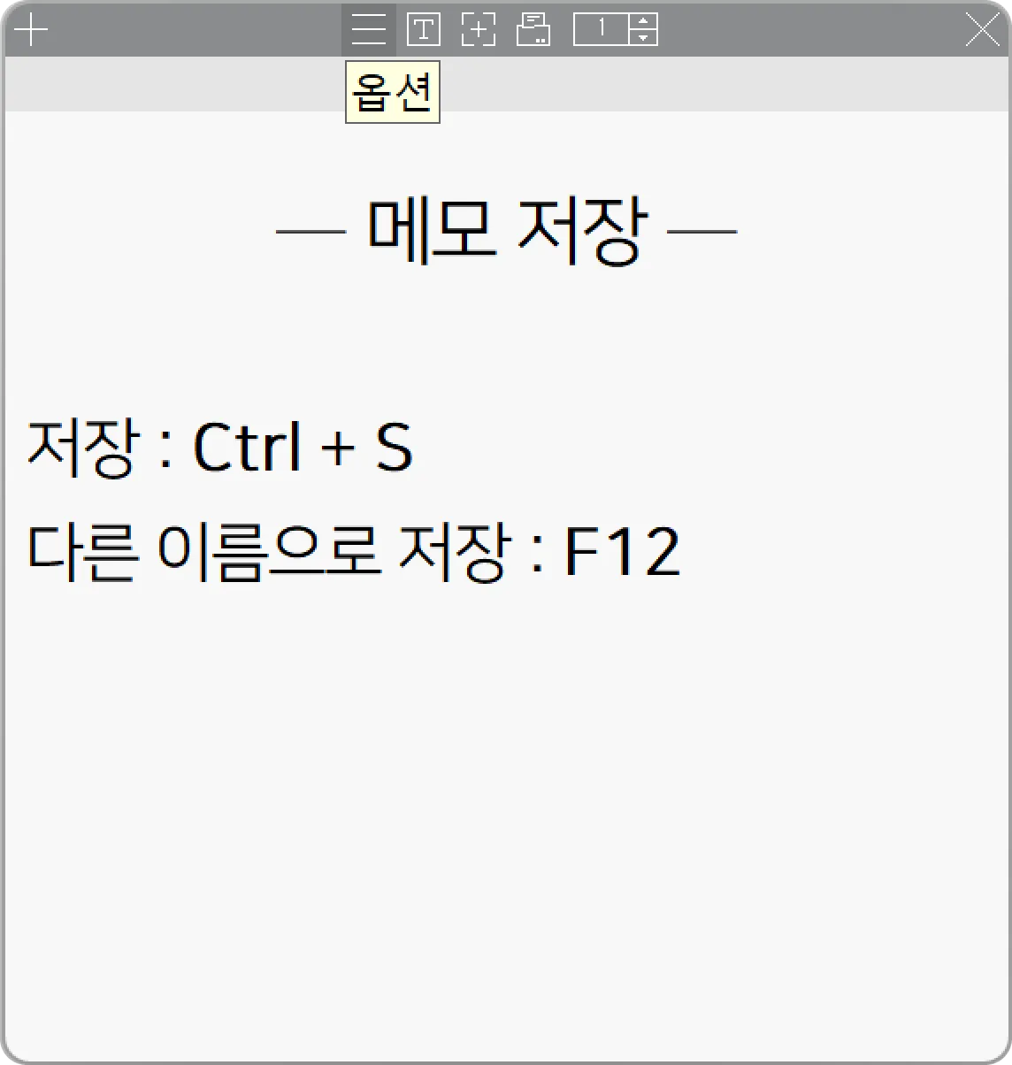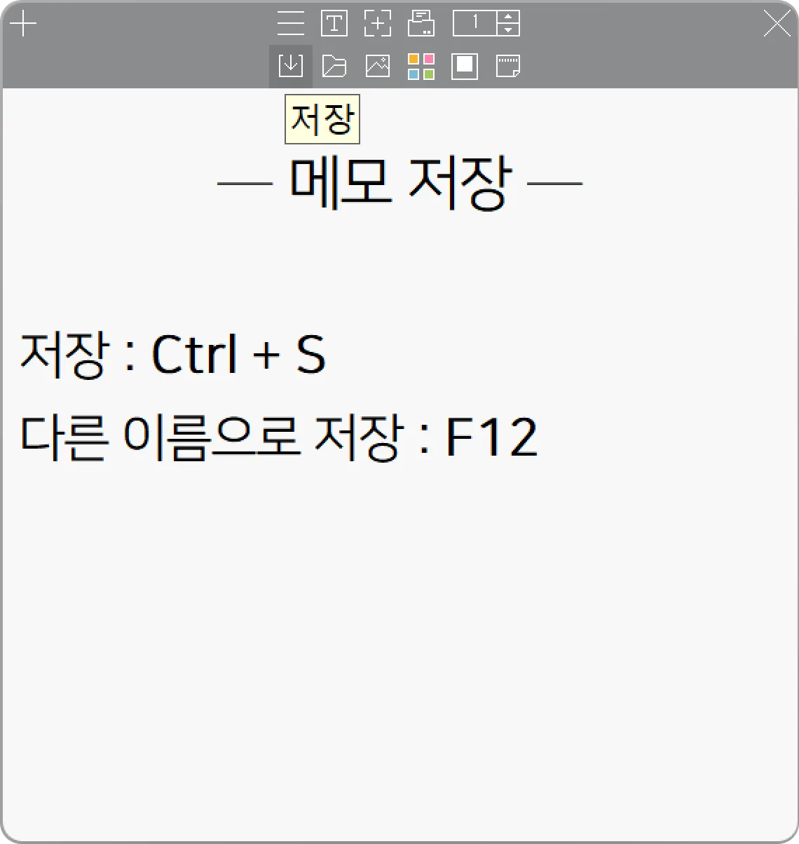 저장 아이콘을 누르거나, Ctrl + S 를 누르면 현재 메모가 저장됩니다.