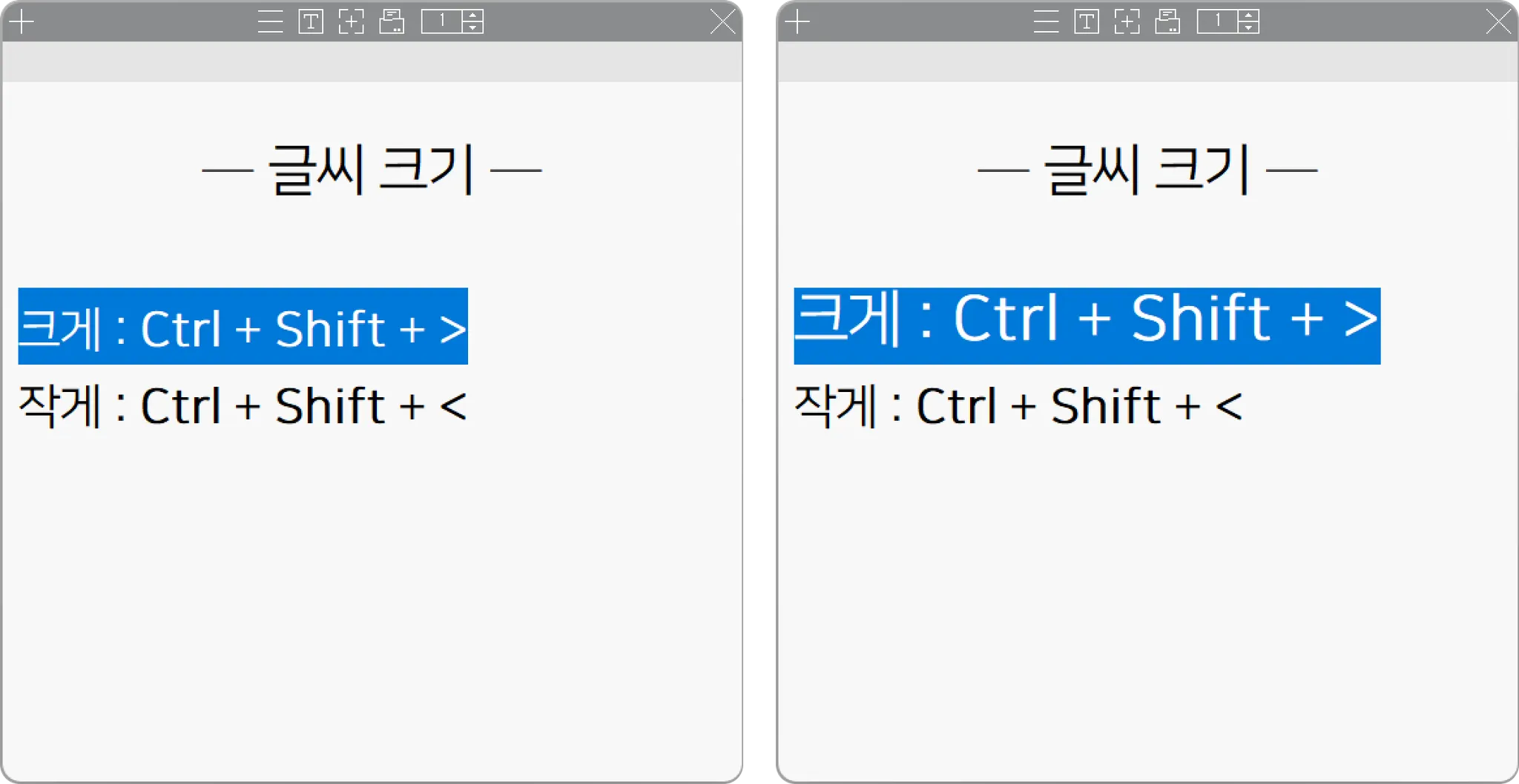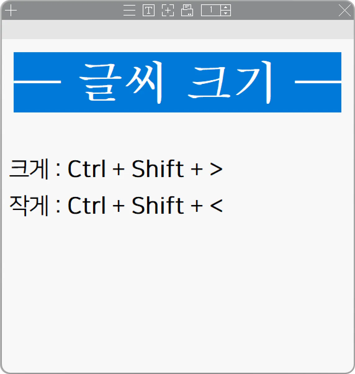 아래와 같은 단축키로 글씨 크기를 조정할 수 있습니다.