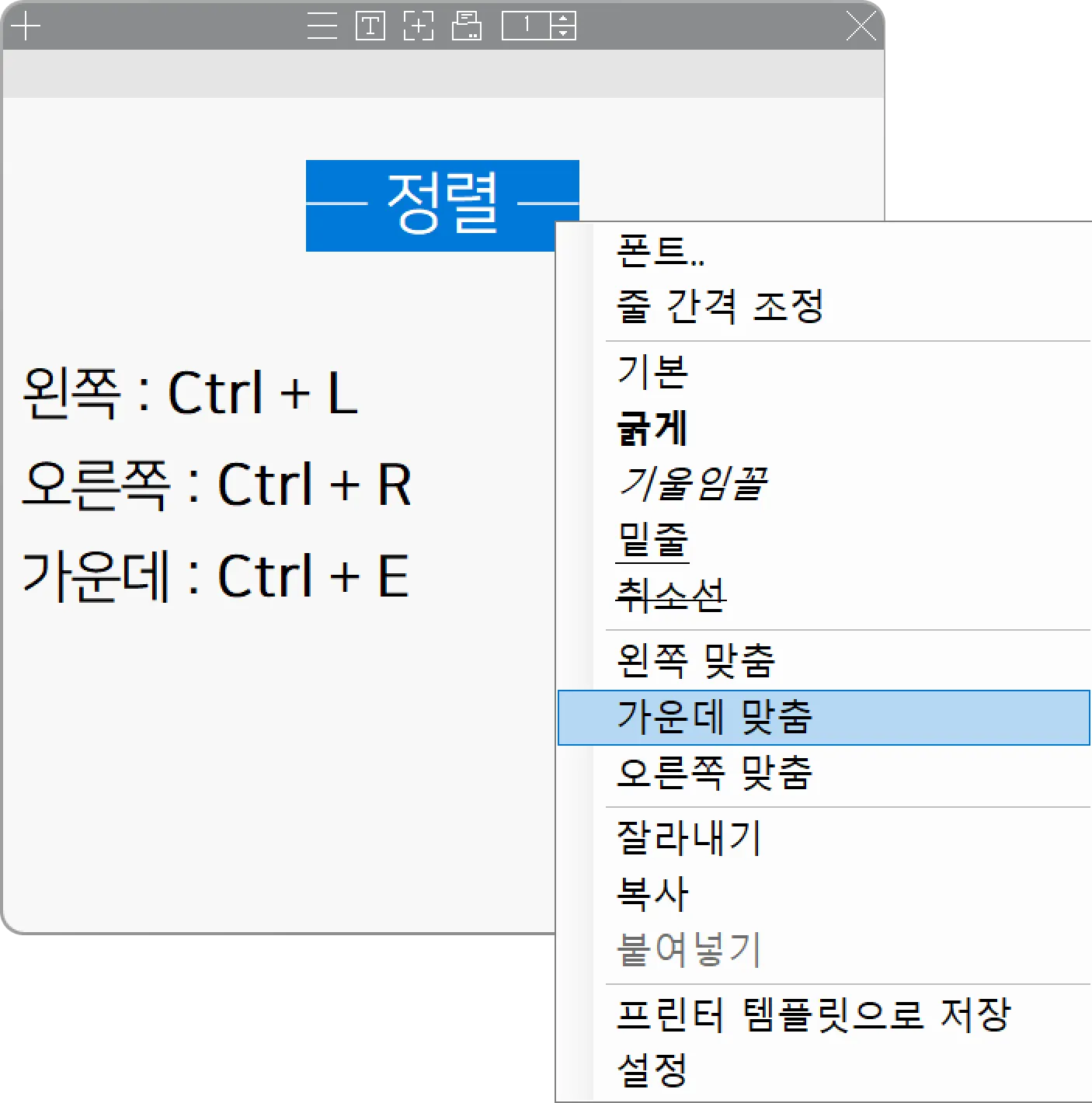 ▲ 오른쪽 마우스 클릭 > 가운데 맞춤 선택,