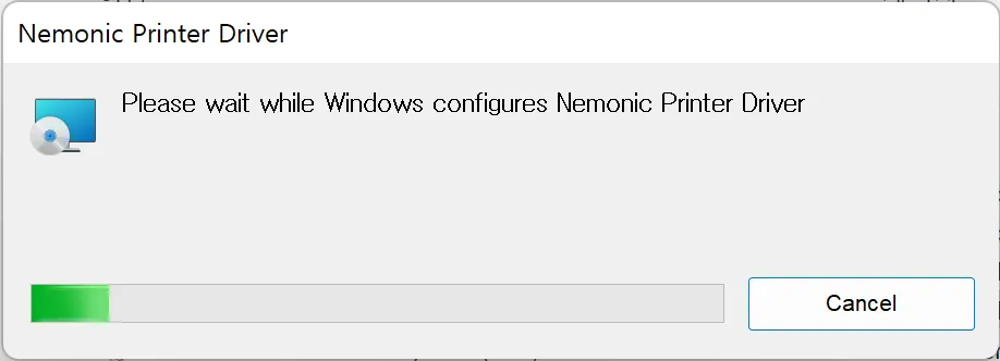 네모닉 프린터가 PC에 연결된 상태에서 프로그램을 설치할 경우,