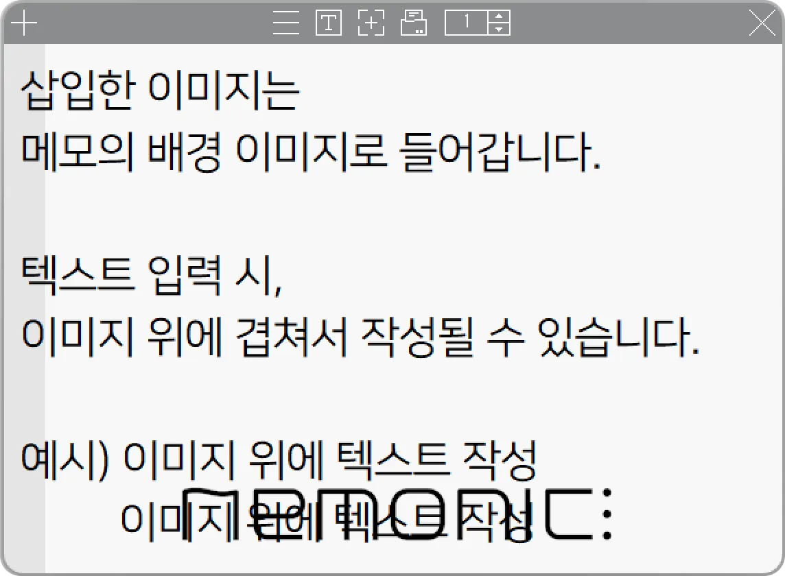 삽입했던 이미지는, 메모의 배경 이미지로 사용됩니다.
