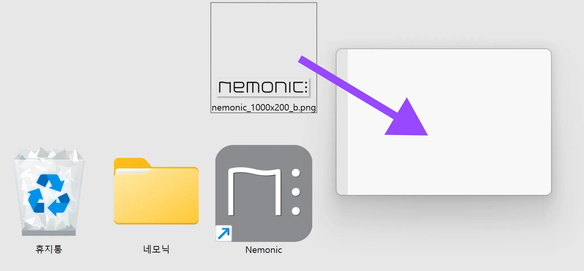 네모닉 앱을 열고, 이미지 파일을 드래그하여 앱에 삽입합니다.