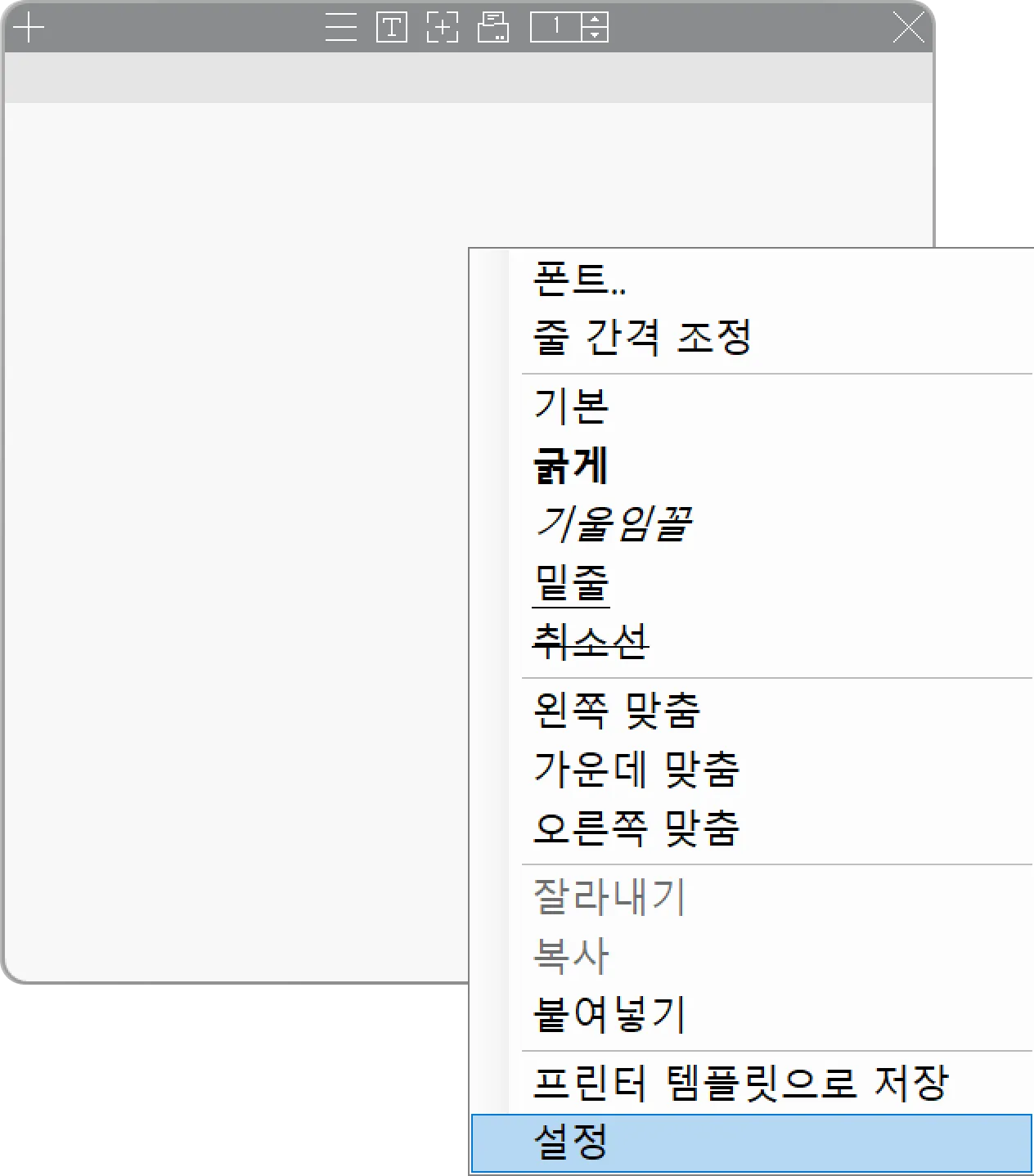 오른쪽 마우스를 클릭하여 설정 을 선택해주세요.