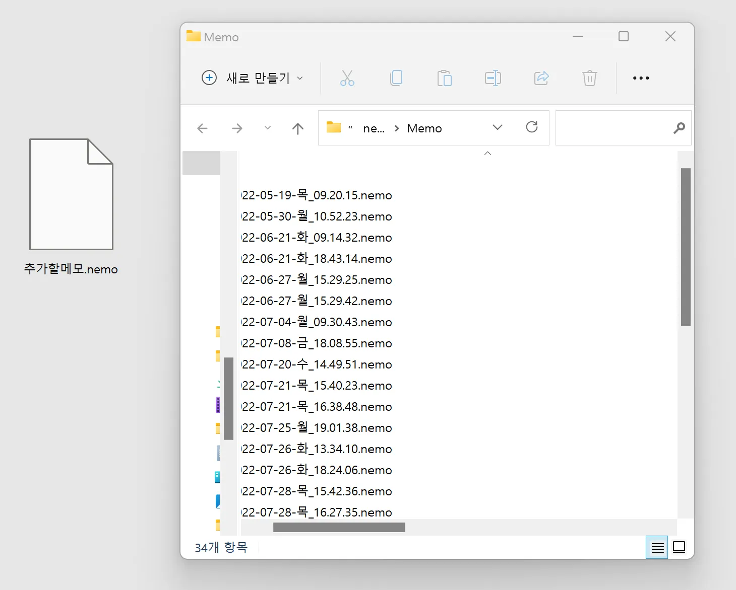 메모가 저장된 폴더가 열리며, 파일을 확인할 수 있습니다.