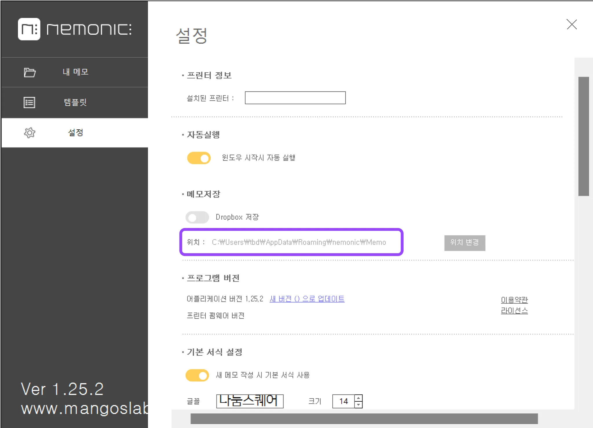 메모파일 저장 위치 확인
