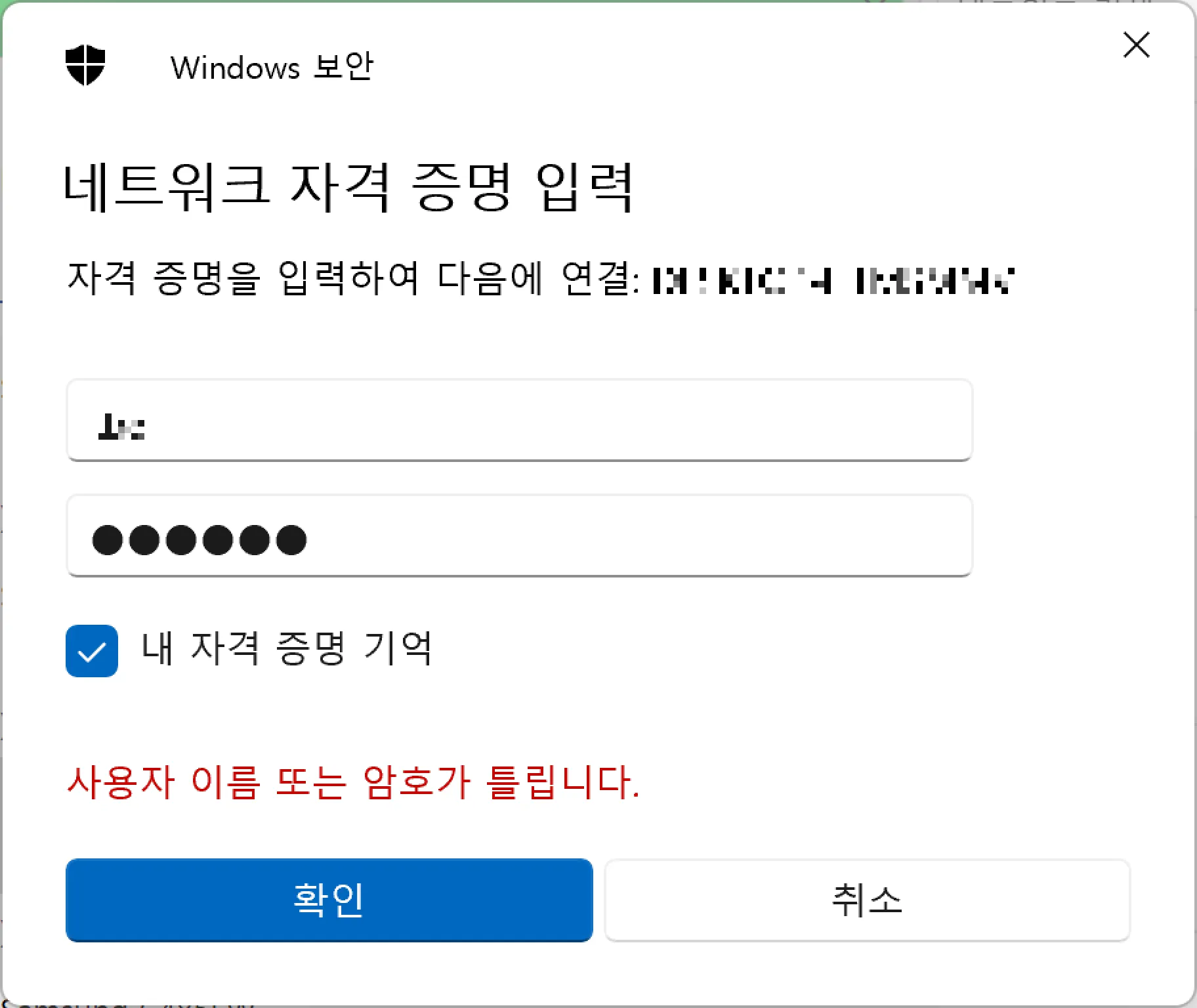 ▲ 네트워크 자격 증명 입력 창이 뜹니다.