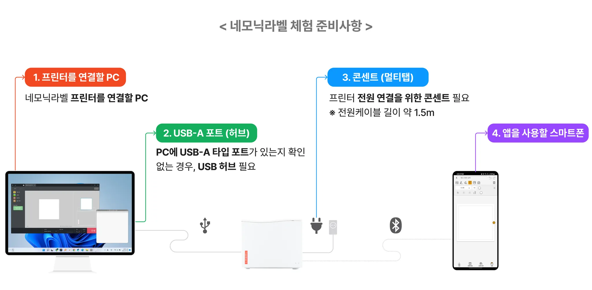네모닉라벨 프린터를 연결할 PC가 필요합니다.