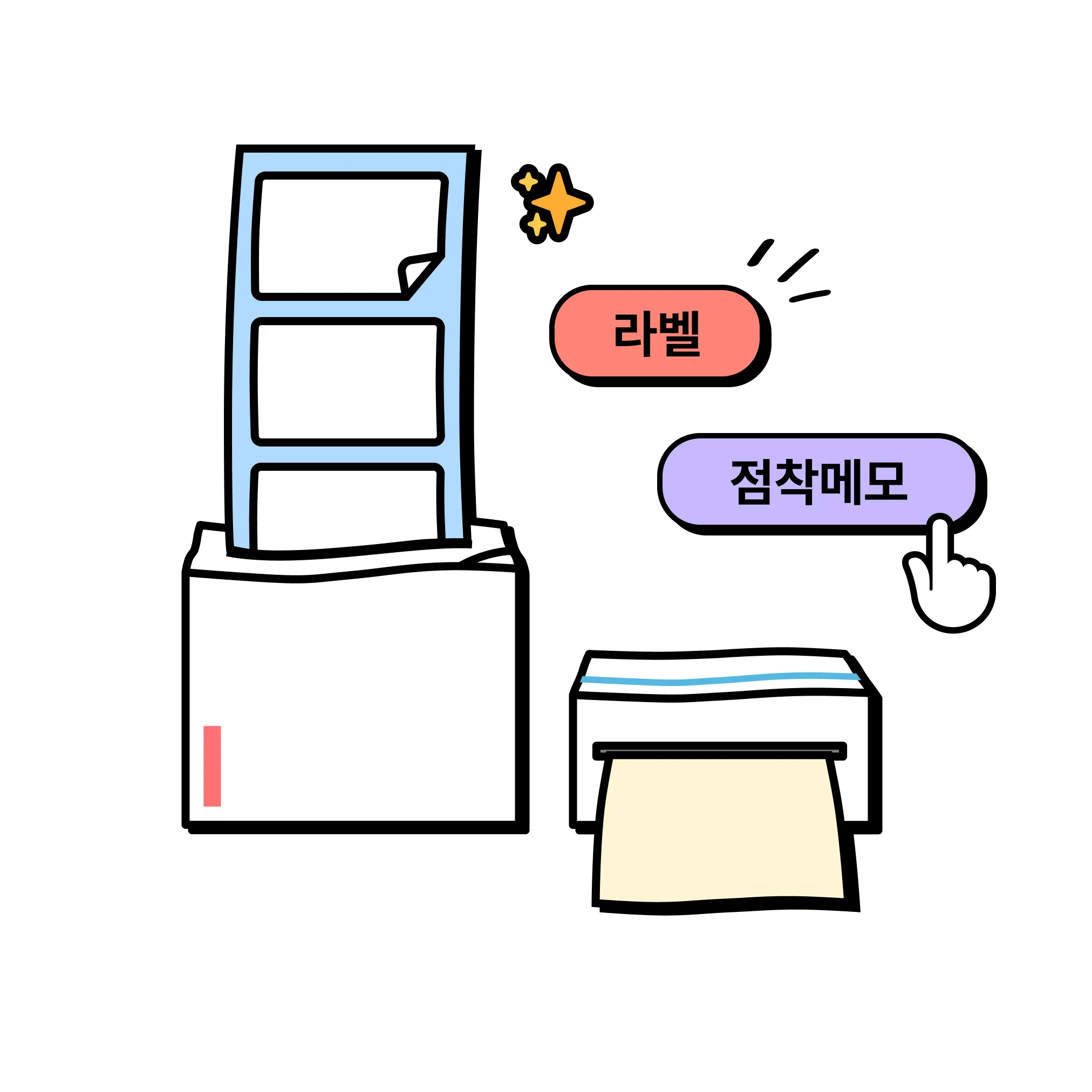 네모닉라벨 프린터로 4종의 점착메모용지, 5종의 라벨용지를 사용할 수 있어요.